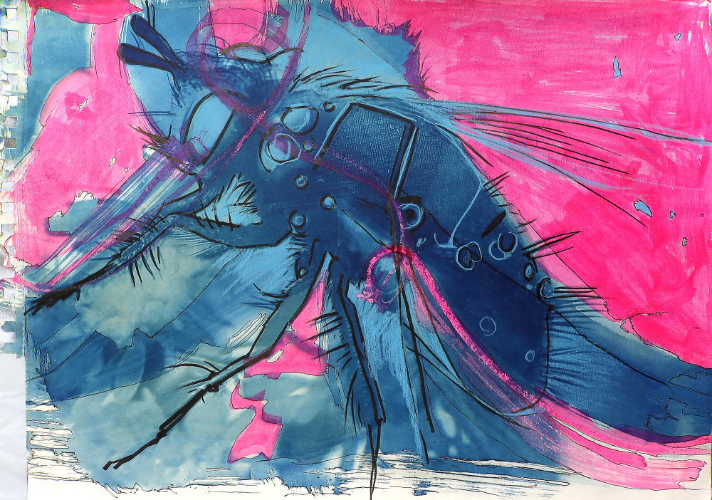 Zeichnung, digitale Bildbearbeitung, Cyanotypie, ab 2023