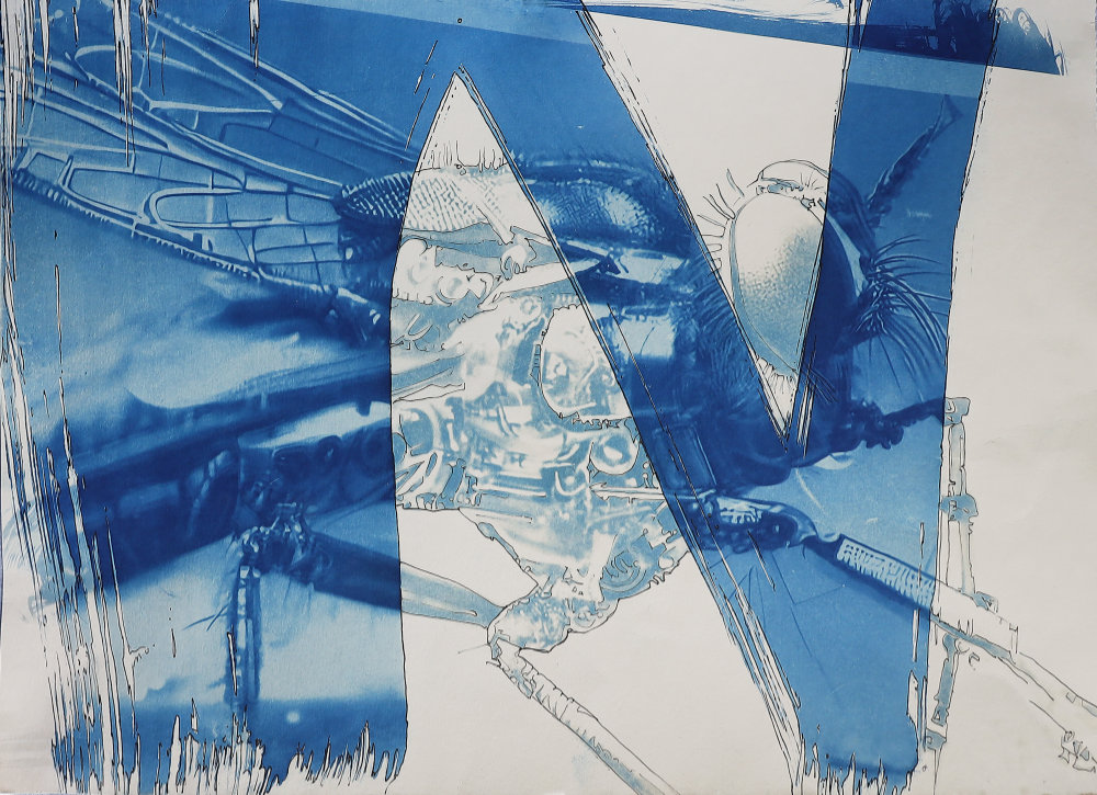 Zeichnung, digitale Bildbearbeitung, Cyanotypie, ab 2023